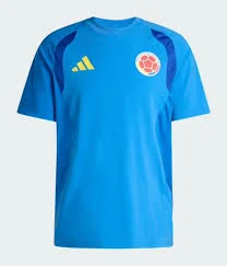 El diseño es igualmente meticuloso en los detalles. Las icónicas tres franjas de Adidas son de un rojo llamativo, adornando prominentemente los hombros. El cuello, los puños y el logotipo de Adidas en el pecho son de color azul oscuro, formando una combinación clásica y armoniosa con el esquema de color amarillo principal, haciendo eco de la paleta de colores de la bandera nacional. La palabra “COLOMBIA” está meticulosamente delineada en azul en el cuello trasero de la camiseta, agregando un toque elegante al diseño general y sirviendo como un recordatorio constante para los jugadores y fanáticos del país que representan.