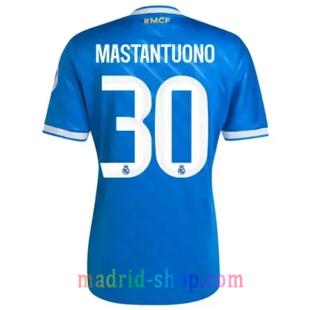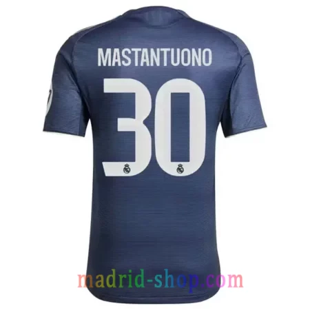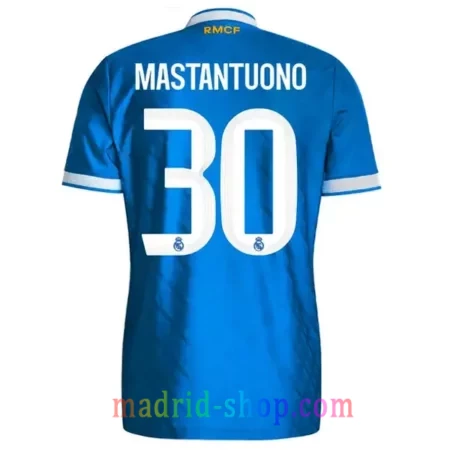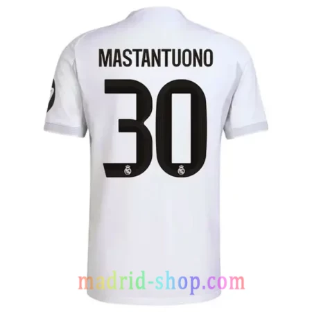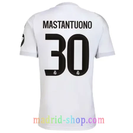 Las imágenes de la camiseta Mastantuono han sido editadas; los productos reales que reciba tendrán los logos de la marca, patrocinadores y el escudo del club claros y completos.