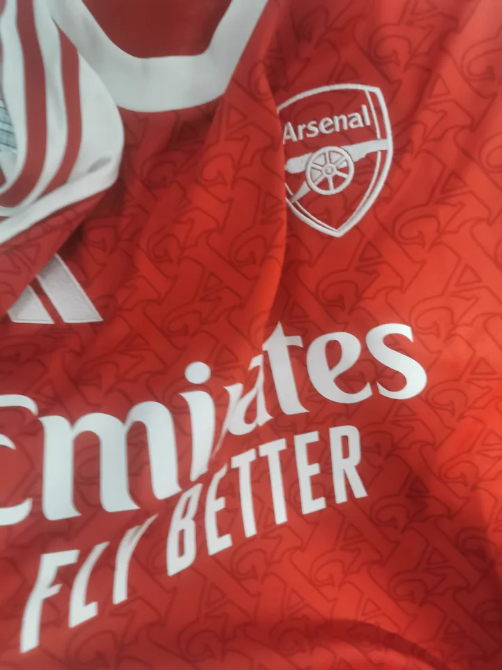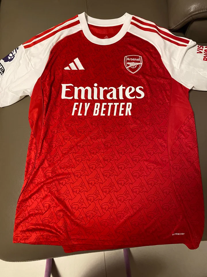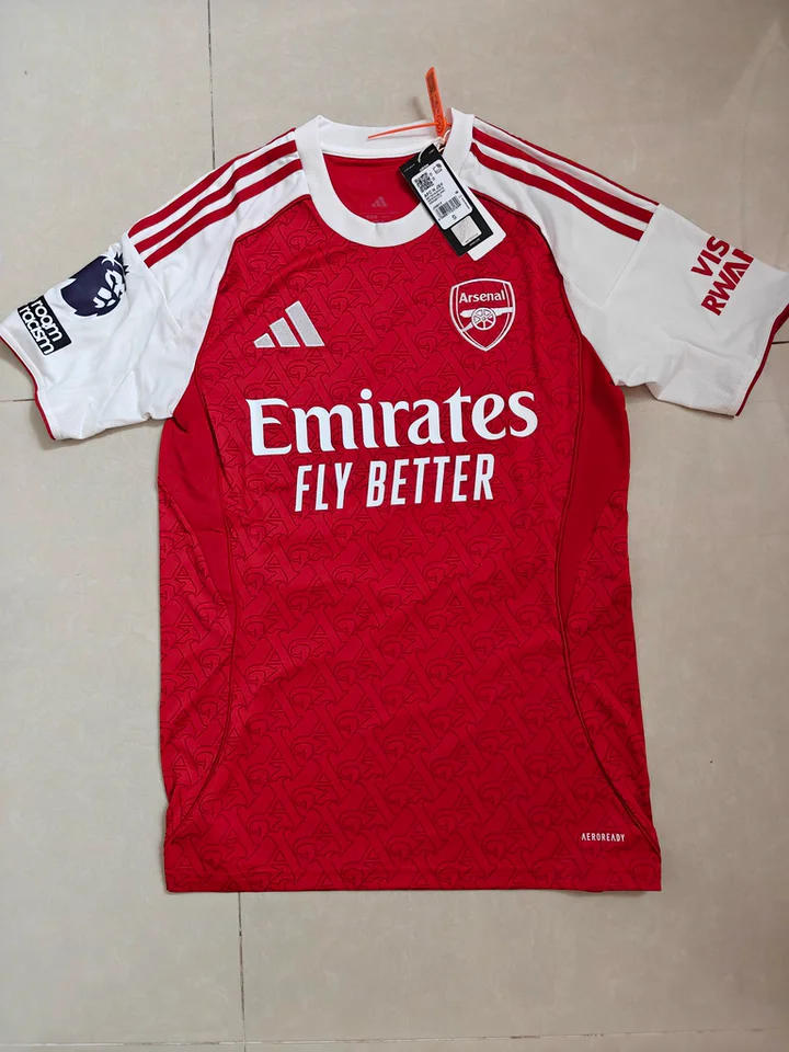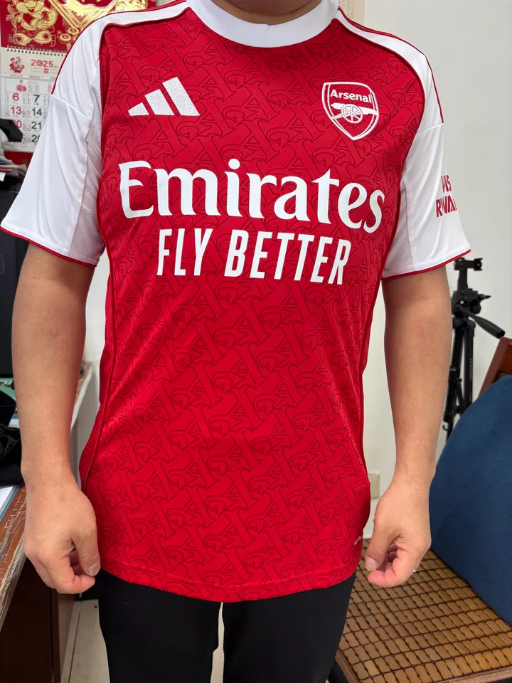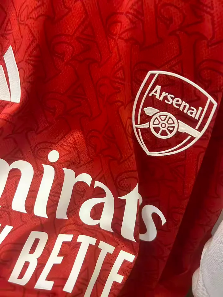 Las imágenes de camisetas Arsenal 2025-26 son editadas por copyright. El producto real incluye el logo completo y claro.