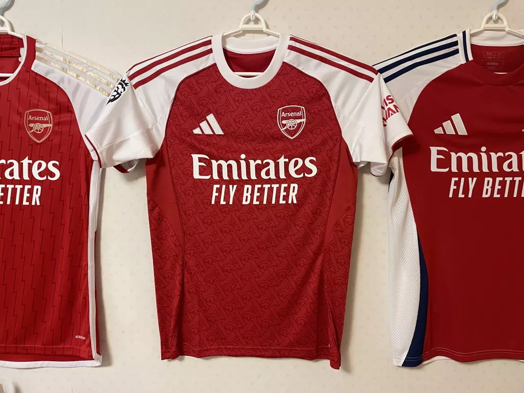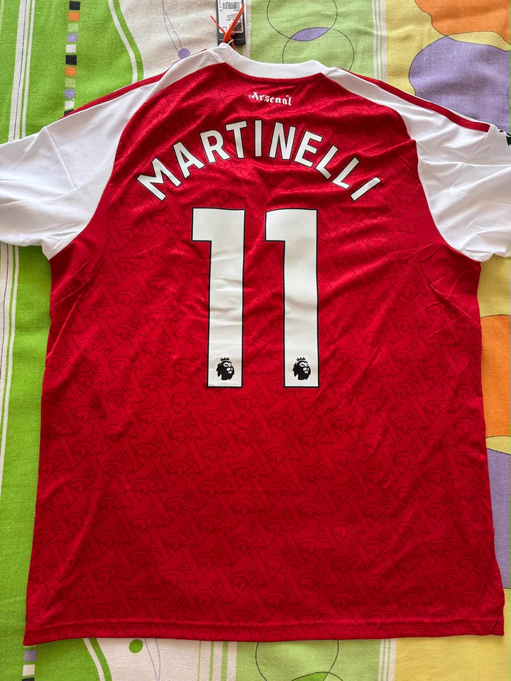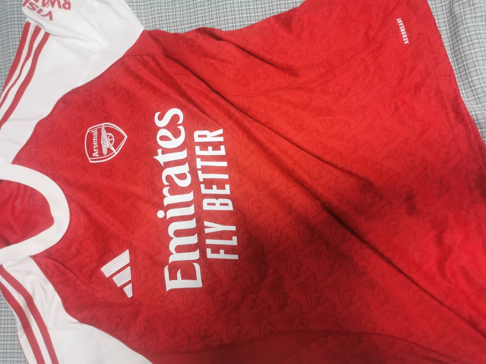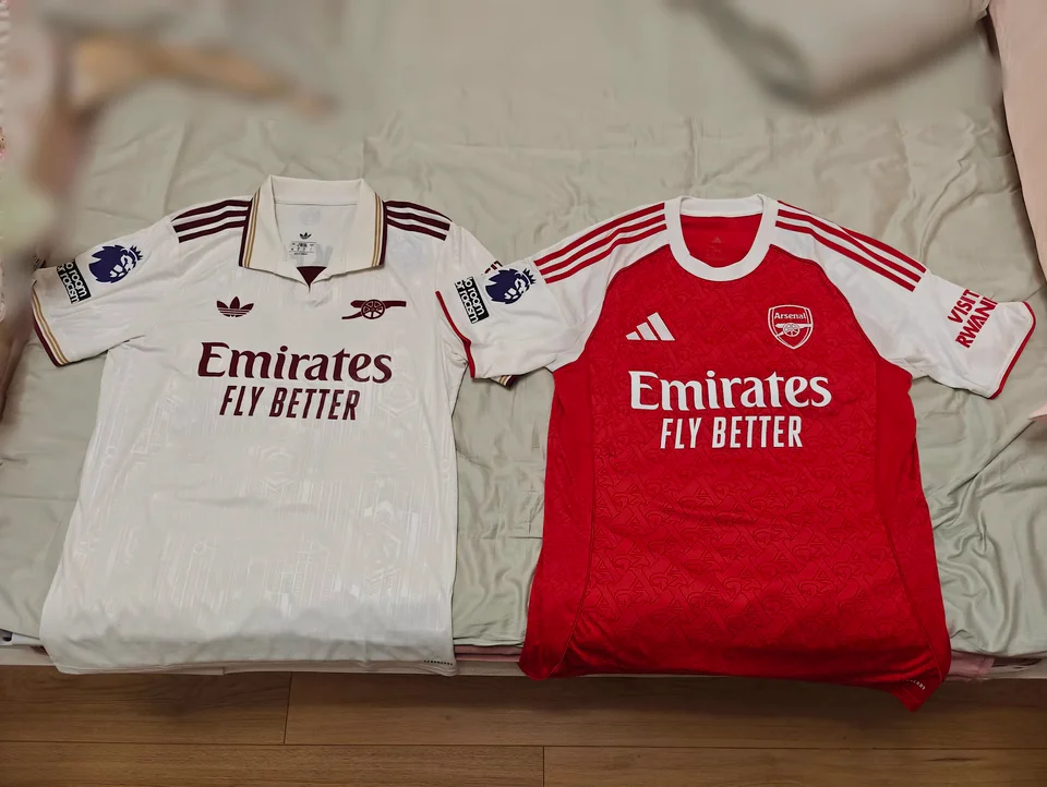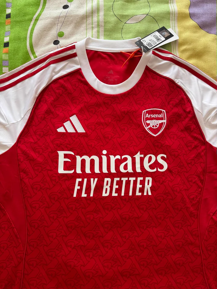 Las imágenes de camisetas Arsenal 2025-26 son editadas por copyright. El producto real incluye el logo completo y claro.
