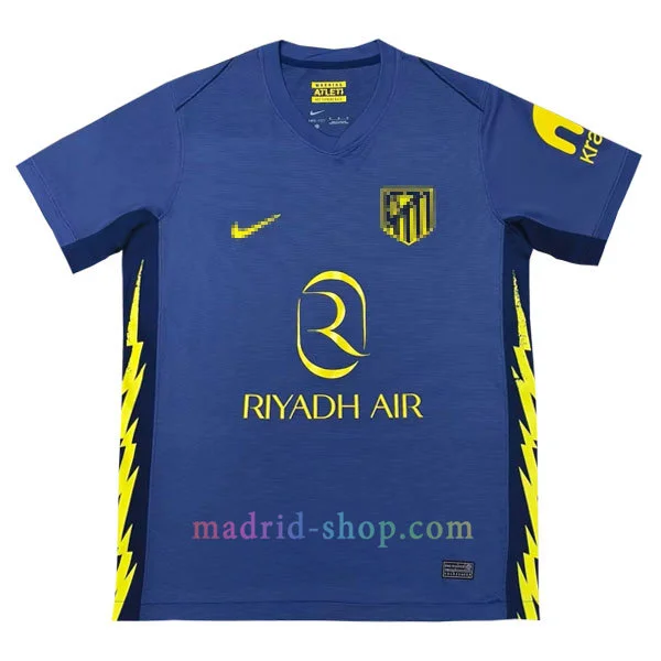 La segunda equipación Atlético de Madrid se diseña en azul marino y amarillo brillante.