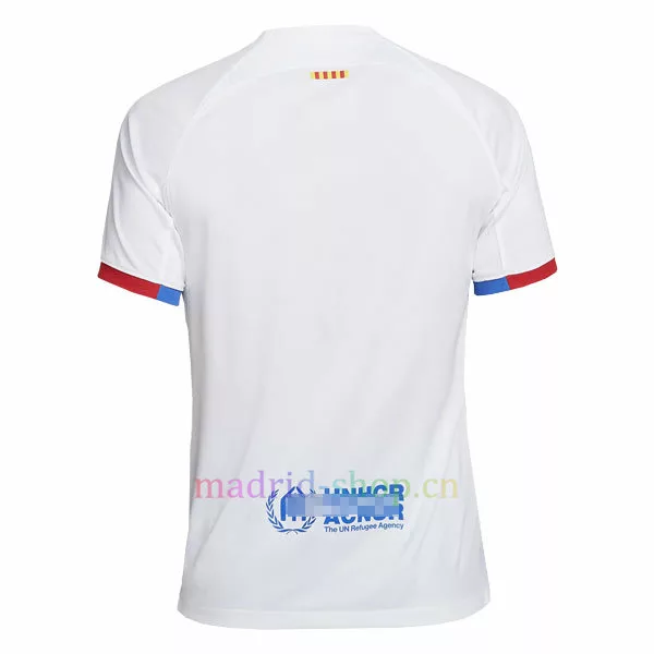 Camiseta Barça Segunda Equipación 2023-24 está inspirada en las camisetas blancas del club de los años 70, en las que jugaba el legendario Johan Cruyff. El color general es blanco, con detalles azules y rojos, y a finales de los años 70, el vestuario del Barcelona era blanco.