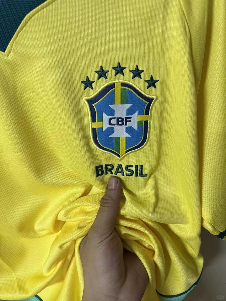 Las imágenes de camisetas Brasil del Mundial 2026 son editadas por copyright. El producto real incluye el logo completo y claro.