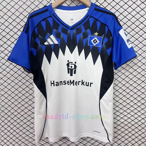 Las imágenes de camisetas Hamburgo SV 2025-26 son editadas por copyright. El producto real incluye el logo completo y claro.