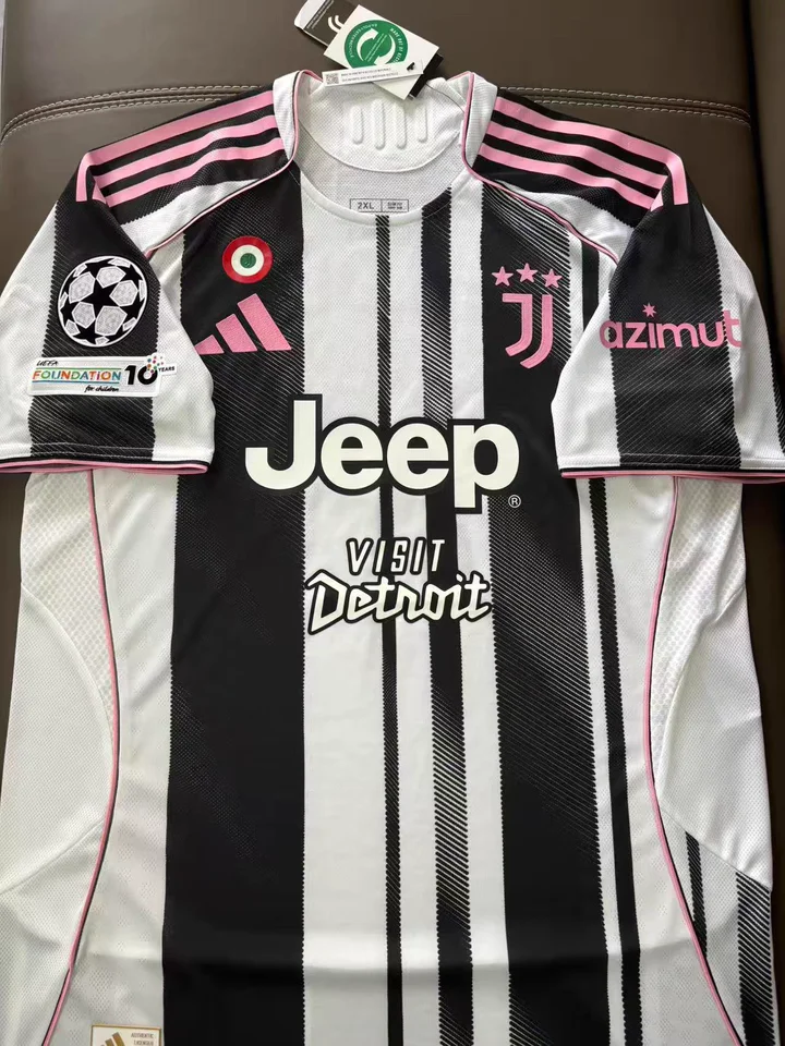 Las imágenes de camisetas Juventus 2025-26 son editadas por copyright. El producto real incluye el logo completo y claro.