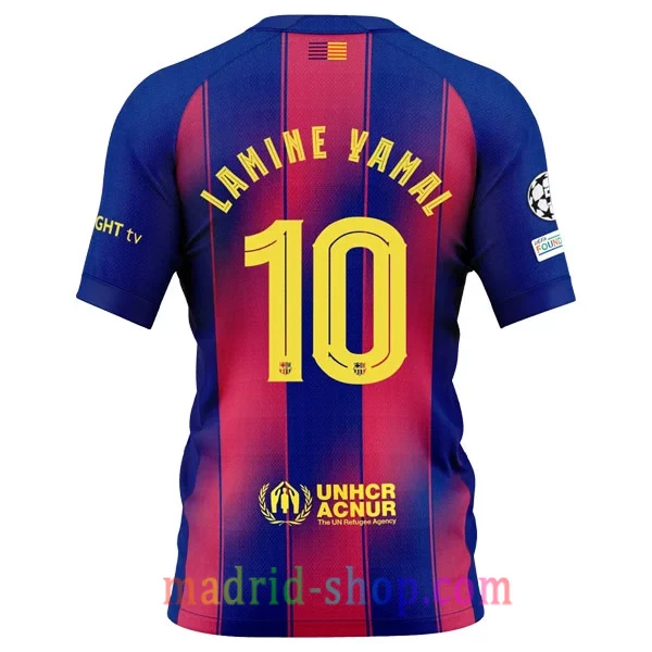Las imágenes de camisetas Lamine Yamal Barcelona 25-26 son editadas por copyright. El producto real incluye el logo completo y claro.