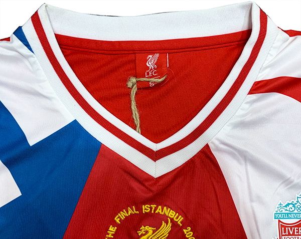 Insignia del Liverpool F.C. en el pecho.