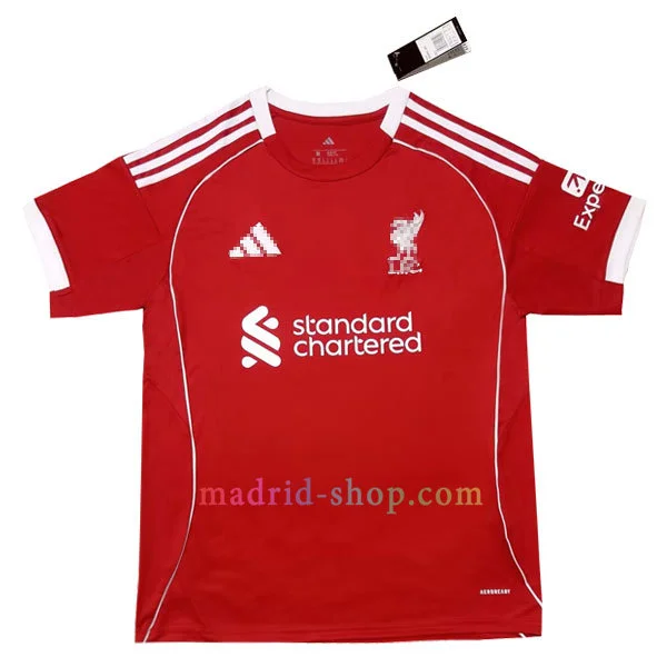 Las imágenes de camisetas Liverpool 25-26 son editadas por copyright. El producto real incluye el logo completo y claro.