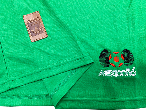Las camisetas es de color verde con rayas blancas en ambos hombros y puños blancos, haciendo eco del diseño del cuello blanco.