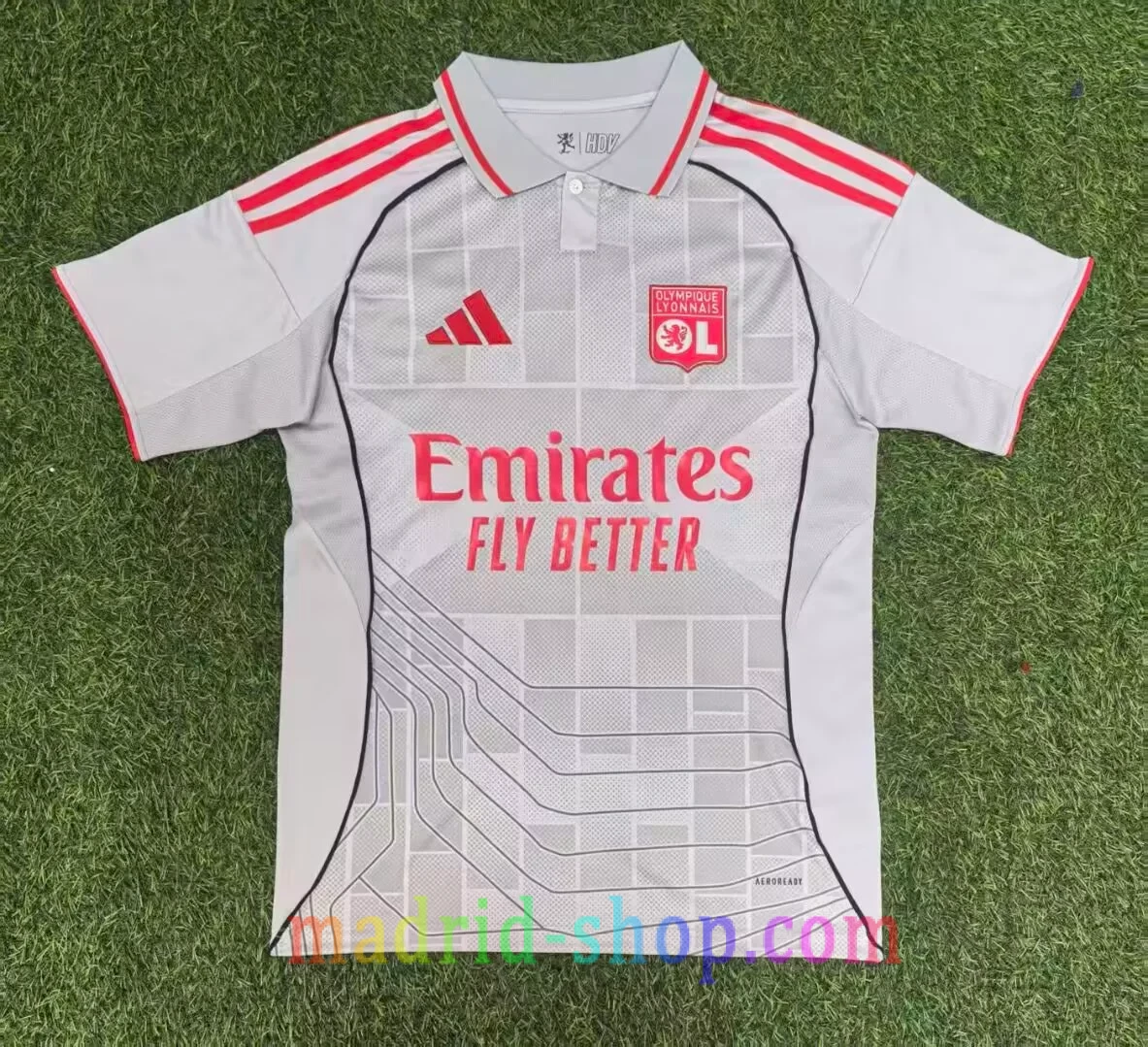 Las imágenes de camisetas Olympique de Lyon 25-26 son editadas por copyright. El producto real incluye el logo completo y claro.