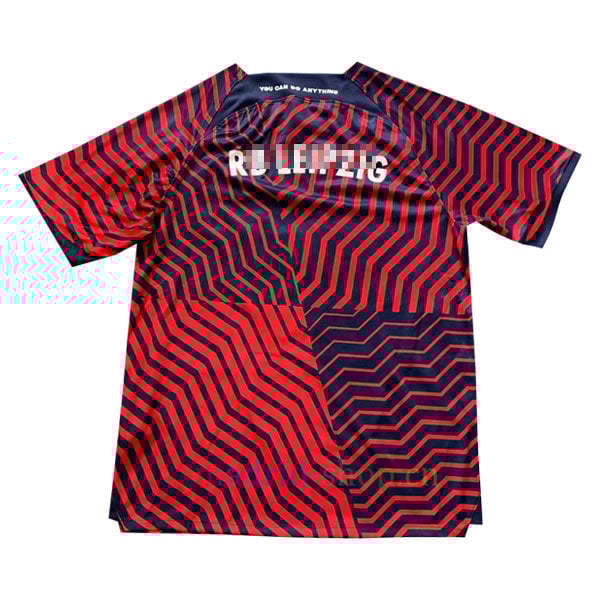 La camiseta RB Leipzig segunda equipación 2023-24 presenta principalmente un diseño azul y rojo. La camiseta presenta un distintivo diseño a rayas azules y rojas que forma un deslumbrante efecto de camuflaje. El credo del club ‘You Can Do Anything’ está impreso en la espalda debajo del cuello.