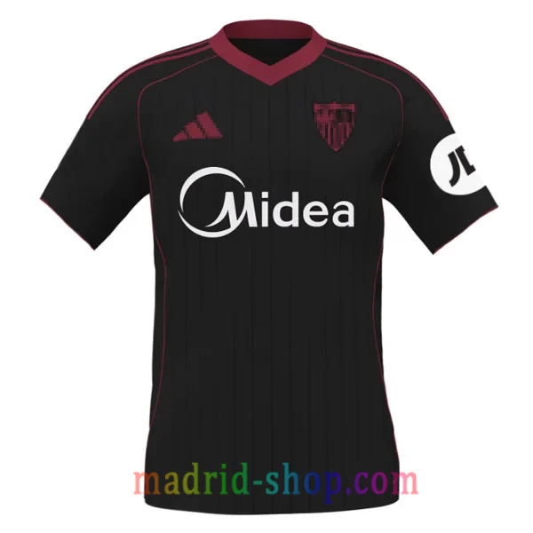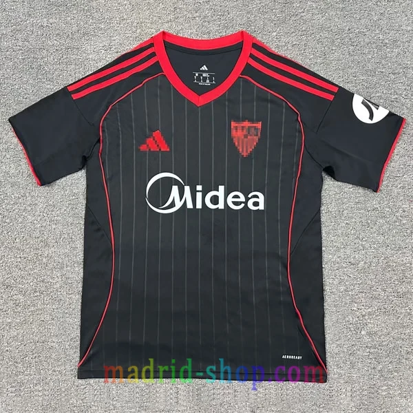 Las imágenes de camisetas Sevilla 2025-2026 son editadas por copyright. El producto real incluye el logo completo y claro.