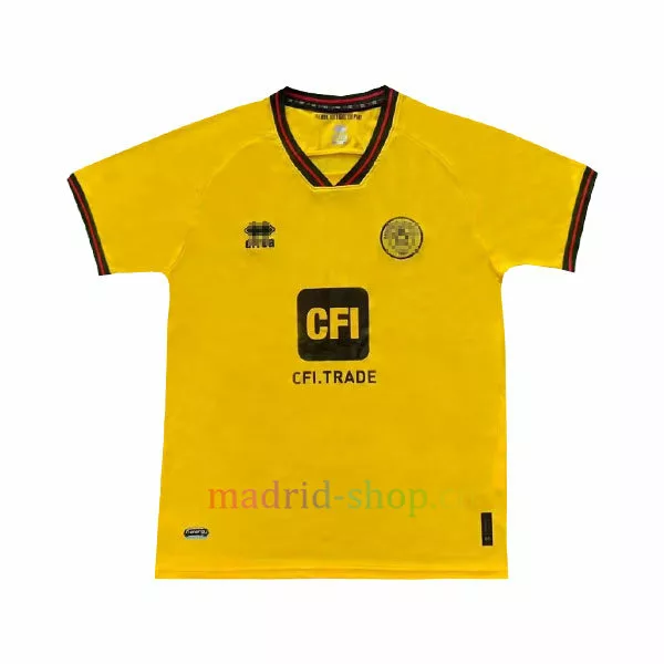 La Camiseta Sheffield Segunda Equipación 2023-24 está confeccionada en un tejido jacquard con rayas tejidas en el material, y está acabada en un color amarillo general con cuello de canalé elástico negro y rojo y puños a juego.