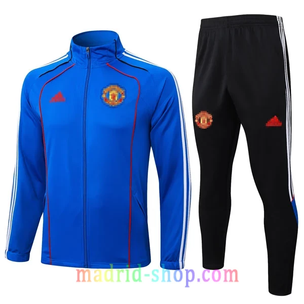 Las imágenes de chándal Manchester United 2025-26 son editadas por copyright. El producto real incluye el logo completo y claro.