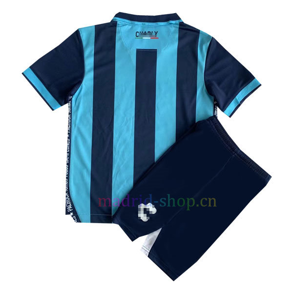 La camiseta Pachuca 2023-24 Niño de Conmemorativa es de color azul y tiene un diseño de rayas verticales; está confeccionado con un tejido ligero que absorbe el sudor, diseñado para mantenerte seco y transpirable cuando lo lleves puesto.